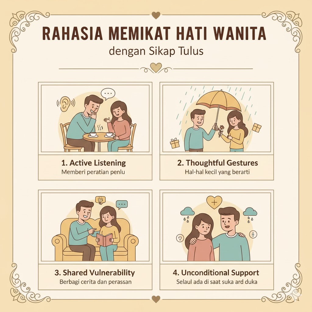 Banyak pria berpikir bahwa memikat hati wanita membutuhkan gaya, harta, atau kata-kata manis. Padahal, salah satu cara yang paling efektif adalah melalui ketulusan. Wanita lebih mudah tersentuh ketika seseorang menunjukkan perhatian yang jujur tanpa dibuat-buat. Artikel ini membahas rahasia memikat hati wanita dengan sikap tulus yang mudah diterapkan dalam kehidupan sehari-hari.