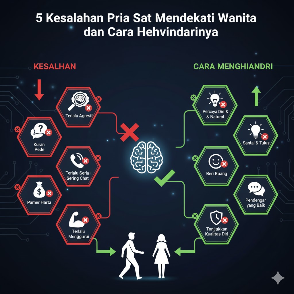 Mendekati wanita bukan sekadar soal keberanian, tetapi juga strategi yang tepat dan sikap yang bijak. Banyak pria merasa gugup atau melakukan hal-hal yang justru membuat wanita tidak nyaman. Artikel ini membahas 5 kesalahan umum pria saat mendekati wanita dan cara menghindarinya agar peluang sukses lebih tinggi.