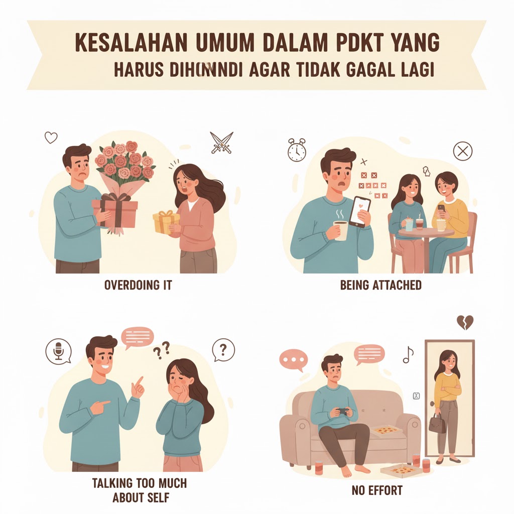 Proses pendekatan atau PDKT sering kali menentukan kelanjutan hubungan asmara. Banyak orang gagal bukan karena kurang menarik, tetapi karena melakukan kesalahan-kesalahan sederhana yang bisa dihindari. Artikel ini membahas kesalahan umum saat PDKT dan tips agar pendekatan lebih efektif dan berhasil.
